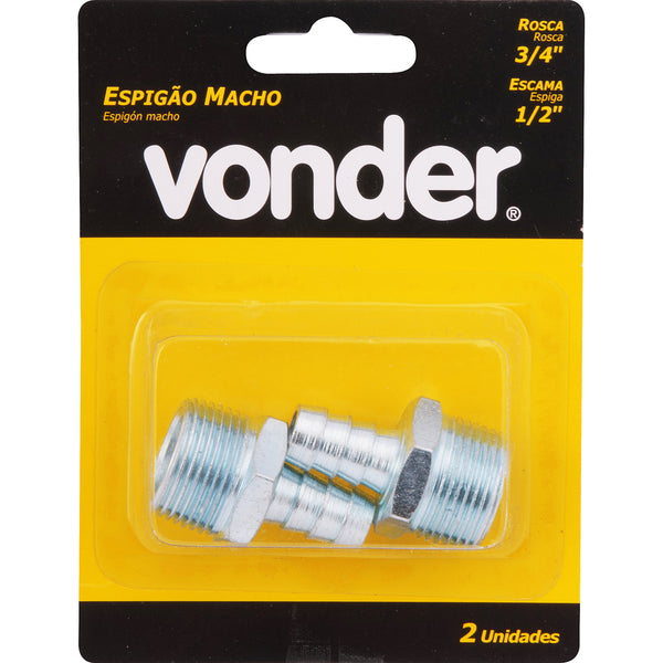 Medida da rosca do espigão para mangueira: 0.3/4 " Tipo da rosca do espigão para mangueira: NPT - Macho Medida da escama do espigão para mangueira: 0.1/2 " Material do espigão para mangueira: Aço zincado