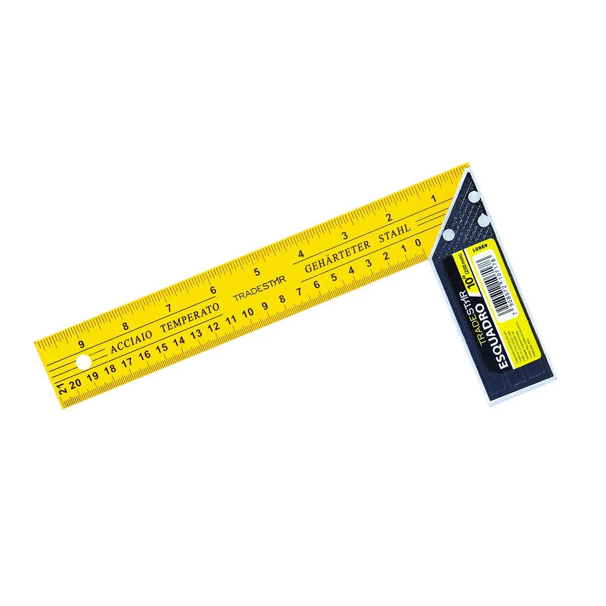 Com marcações claras e fáceis de visualizar, o Esquadro Tradestar é ideal para medir e marcar ângulos de 45° e 90°, assegurando cortes precisos e estruturas alinhadas. Seja para madeira, tijolos, metais ou outros materiais, esta ferramenta é sinônimo de eficiência e confiabilidade.