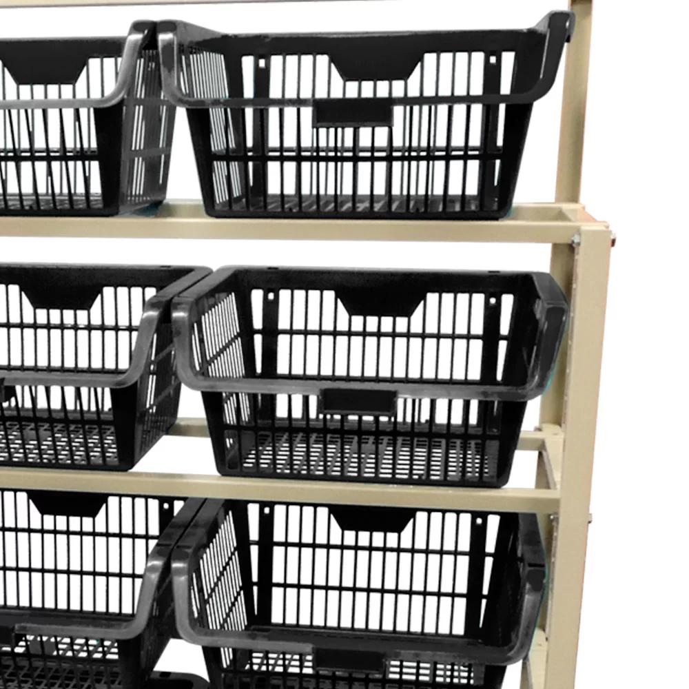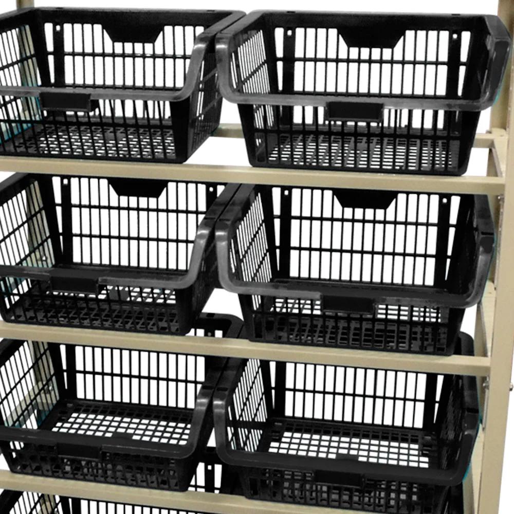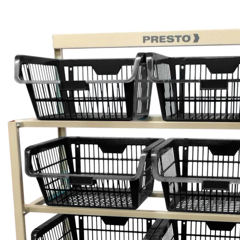 O Kit Cesto Presto, desenvolvido para atender as necessidades de exposição e organização de itens em lojas de departamentos, drogarias, frutarias e demais estabelecimentos comerciais. Agora com estrutura metálica, sua capacidade de carga é de até 80kg distribuídos.