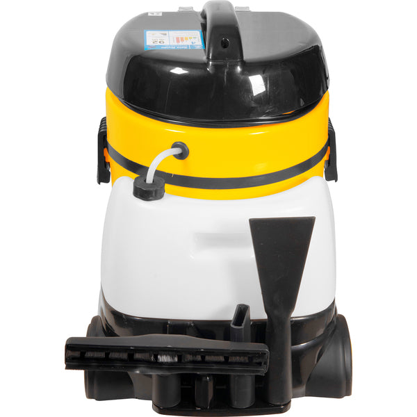 Possui reservatório para água limpa/produto de limpeza com capacidade total de 6 L e também para água suja com capacidade total de 20 L. Conta com porta-acessórios para maior organização e melhor transporte dos acessórios, enrolador de cabo elétrico, que facilita o armazenamento do produto, além de motor com dupla isolação, que garante maior segurança ao operador.