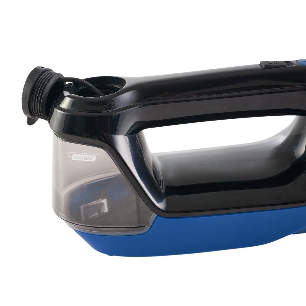 É um produto 4 em 1 que aspira, borrifa, esfrega e extrai removendo sujeiras de diversas superfícies. Possui recipiente com capacidade de 150 ml para água limpa e solução de limpeza e 150 ml e para água suja. É um produto eficiente e livre de cabos, trazendo mais mobilidade para a higienização de ambientes no dia a dia.