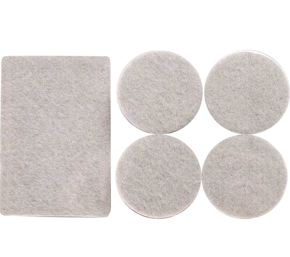 Medida do feltro autoadesivo: Redondo: 38 mm; Retangular: 76 mm x 50 mm