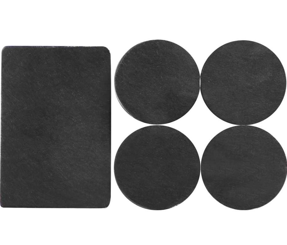 Medida do feltro autoadesivo: Redondo: 38 mm; Retangular: 76 mm x 50 mm