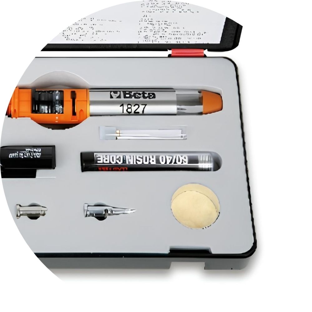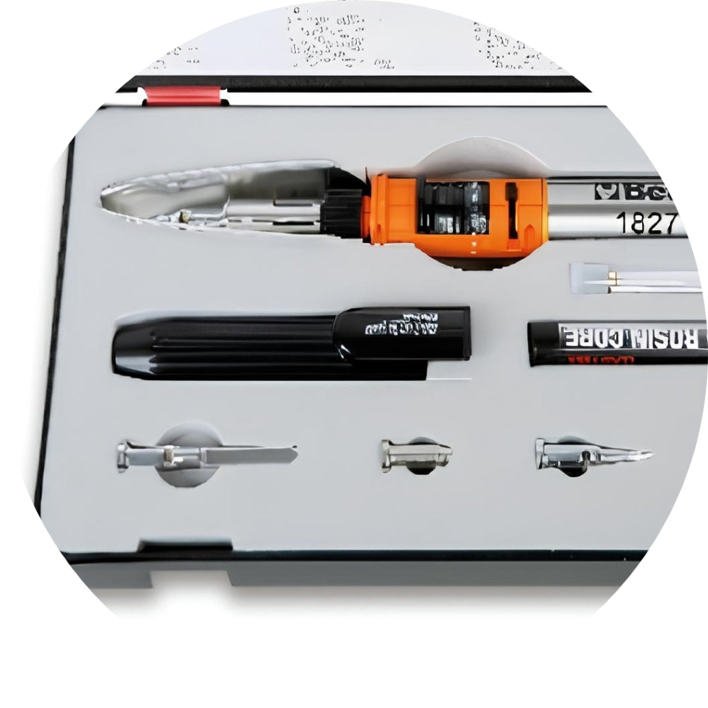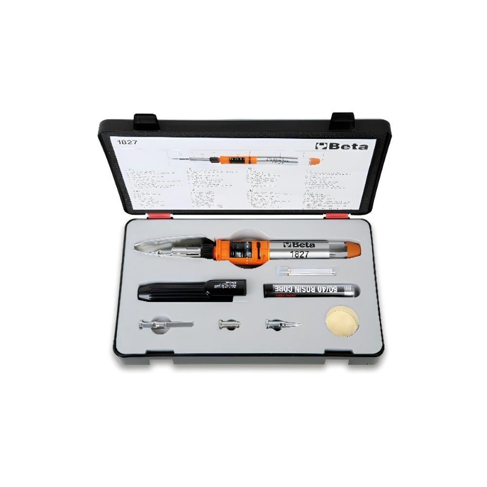 Conteúdo da embalagem: 1 Ferro de Solda a Gás 120W com 7 Acessórios em Caixa de Polietileno 1827/K Beta