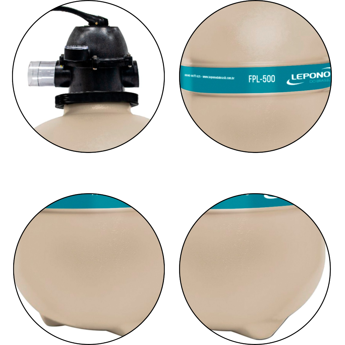 Conteúdo da embalagem: 1 Filtro Piscina Lepono FPL500 50Mm Vazão Nominal 8500l/h