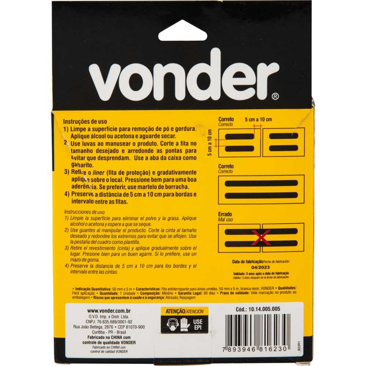 Conteúdo da embalagem: 1 Fita antiderrapante 50 mm x 5 m neon fotoluminescente Vonder