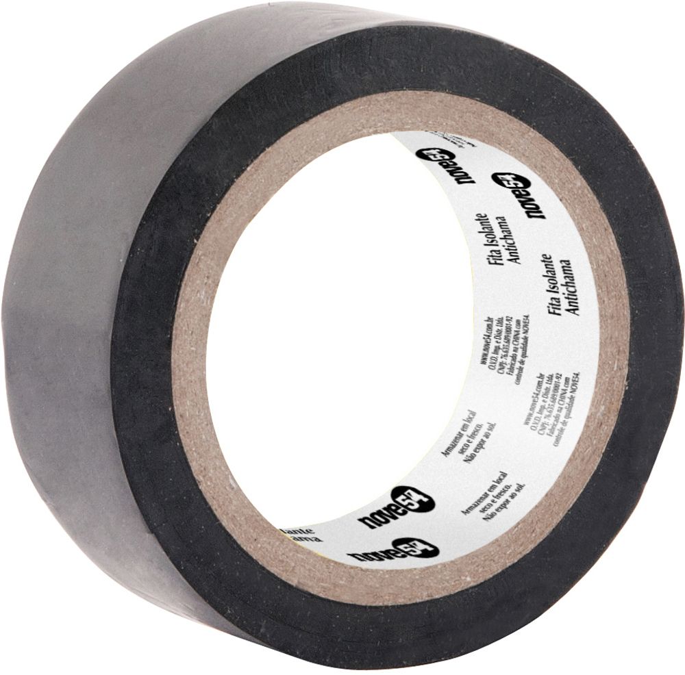 Largura x comprimento da fita isolante: 19 mm x 5 m Material da fita isolante: Filme de PVC com adesivo a base de borracha Cor da fita isolante: Preta Espessura da fita isolante: 0,13 mm Tensão máxima de isolamento da fita isolante: 600 V