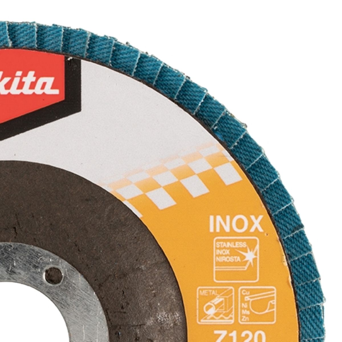 O Flap Disco 115 mm Makita com grão zirconado Z120 é ideal para desbaste e acabamento de metais, proporcionando um trabalho eficiente e uniforme. Sua base de fibra de vidro plana garante maior resistência e durabilidade, sendo uma excelente escolha para aplicações profissionais.