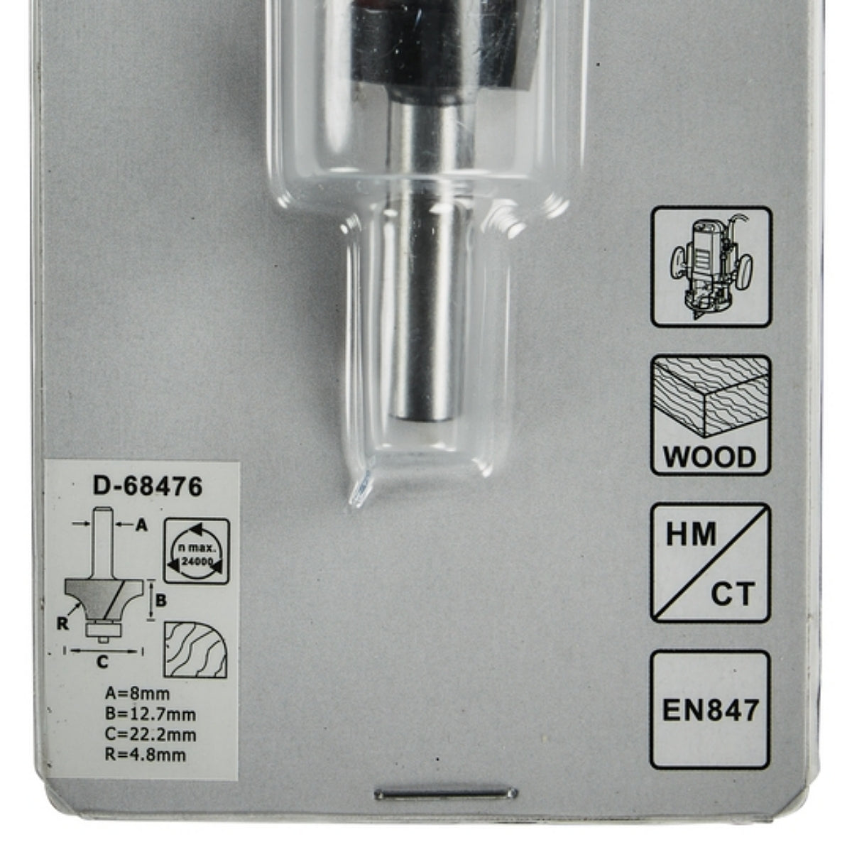 A Fresa de Borda Makita D-68476 possui um diâmetro de corte de 8 mm e raio de 4,8 mm, proporcionando um acabamento arredondado suave e uniforme. Seu comprimento total de 55 mm, aliado ao rolamento de alta qualidade, assegura um deslizamento estável sobre a peça de trabalho, evitando irregularidades e garantindo um acabamento fino e profissional.