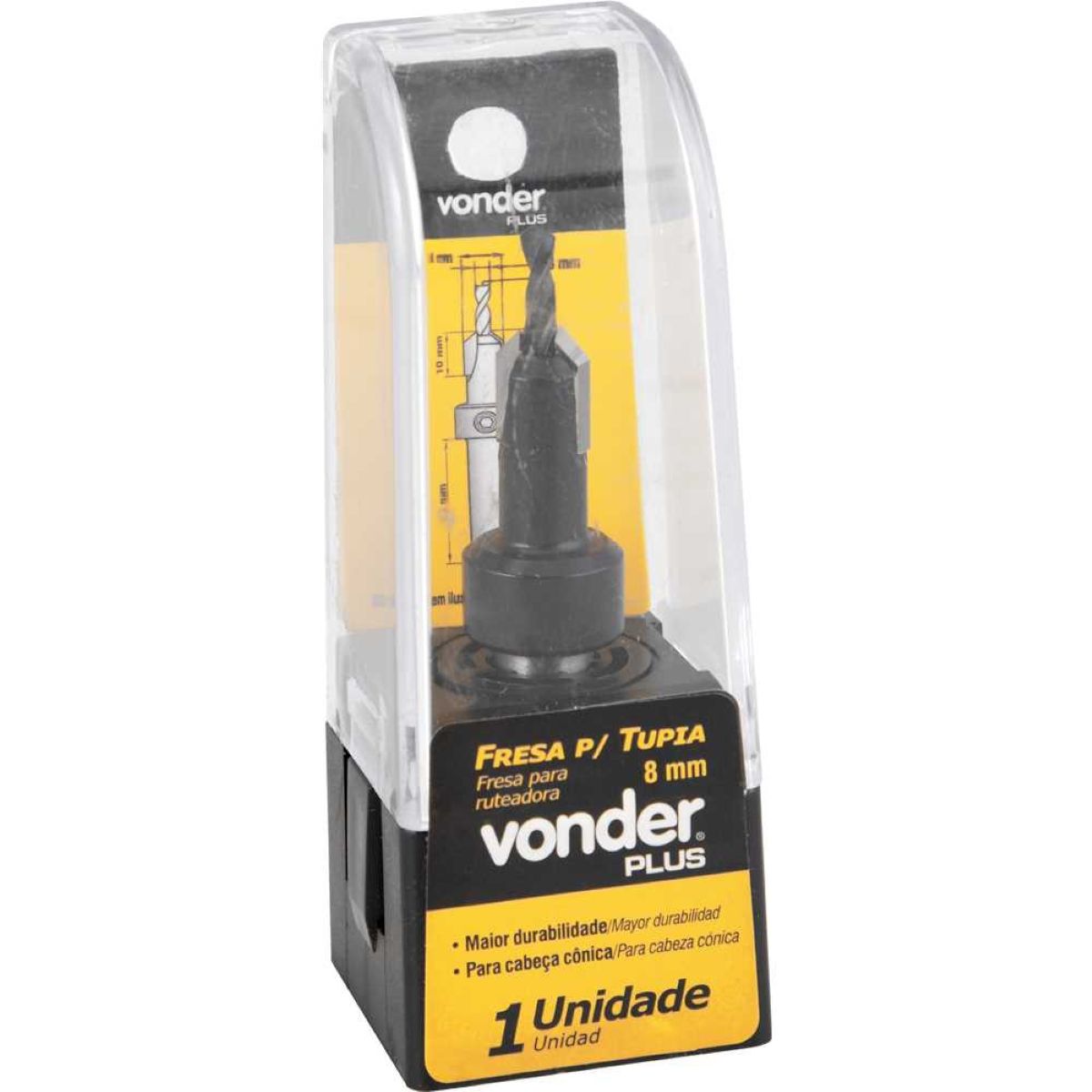 Conteúdo da embalagem: 1 Fresa Para Cabeça Cônica 08mm Vonder Plus