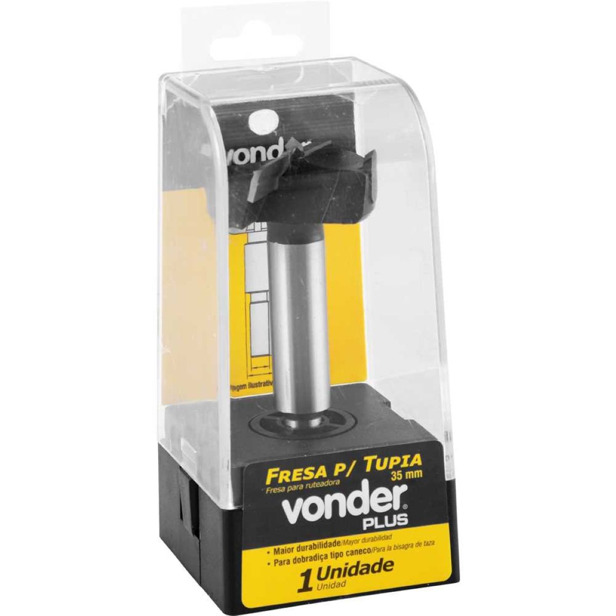 Conteúdo da embalagem: 1 Fresa Para Dobradiça Caneco 35mm 2 Dentes Vonder Plus