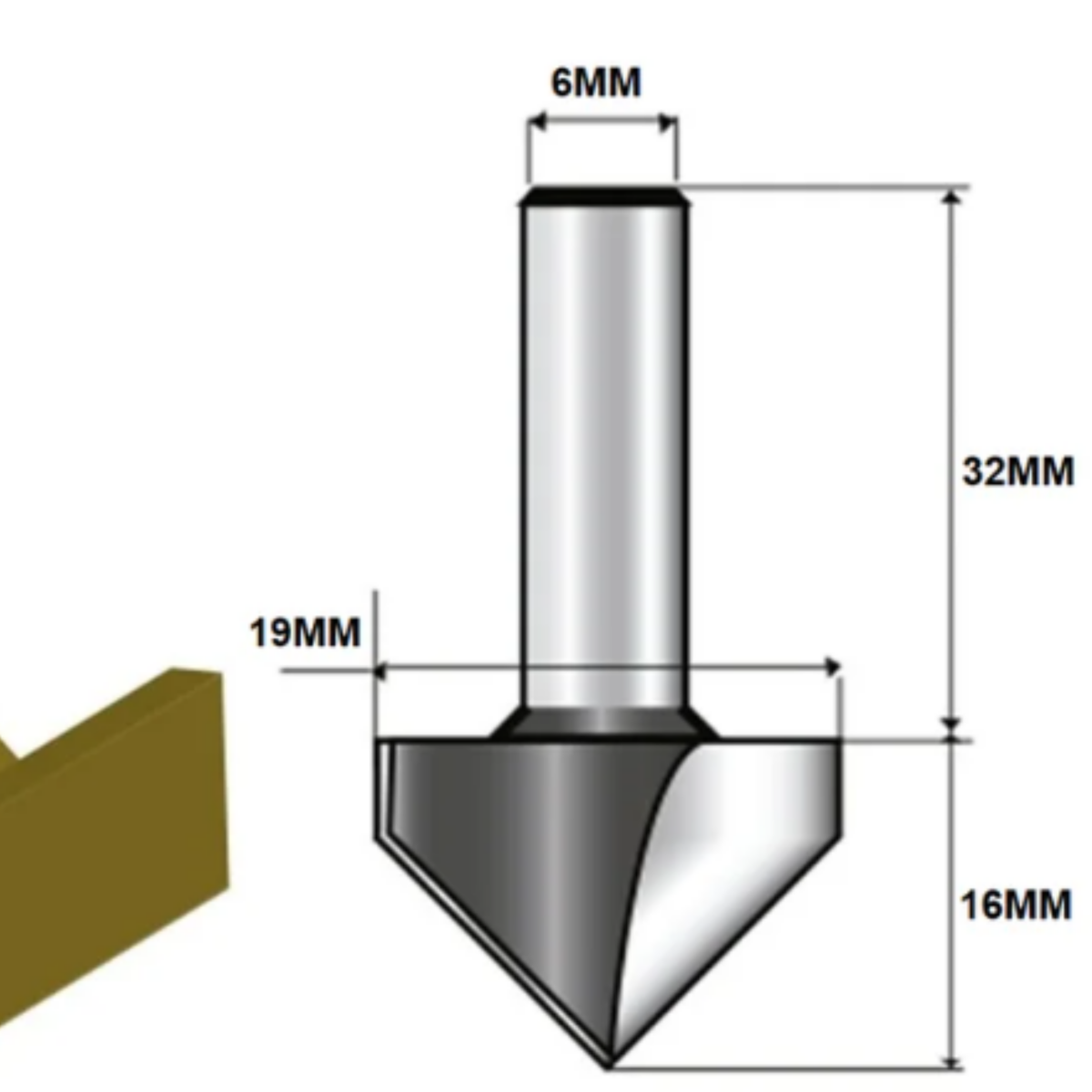 Fresa Tupia Ponta V Makita 6 mm 90° Corte 19 mm D-09597