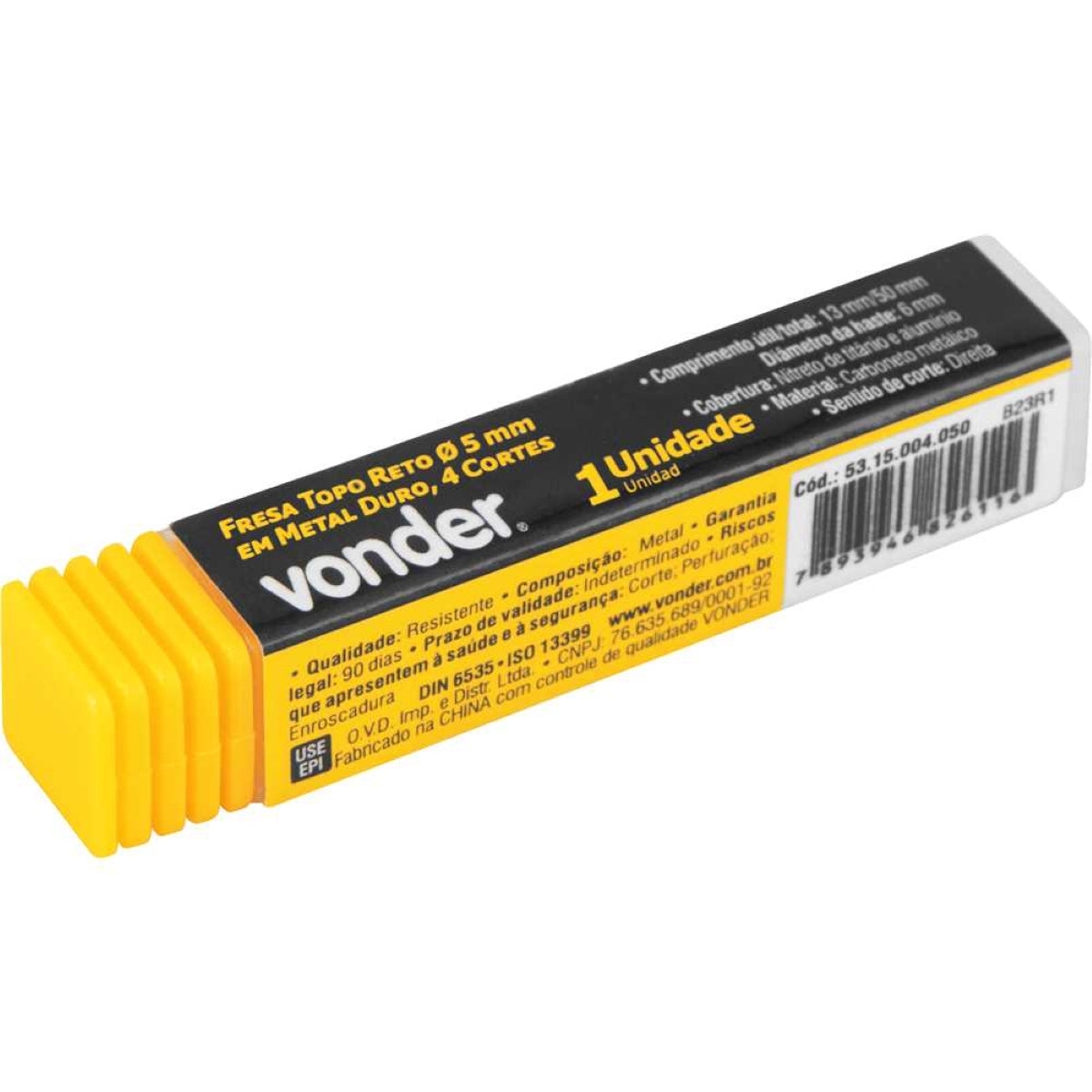 Conteúdo da embalagem: 1 Fresa Topo Metal Duro 5,0mm 4 Cortes Vonder
