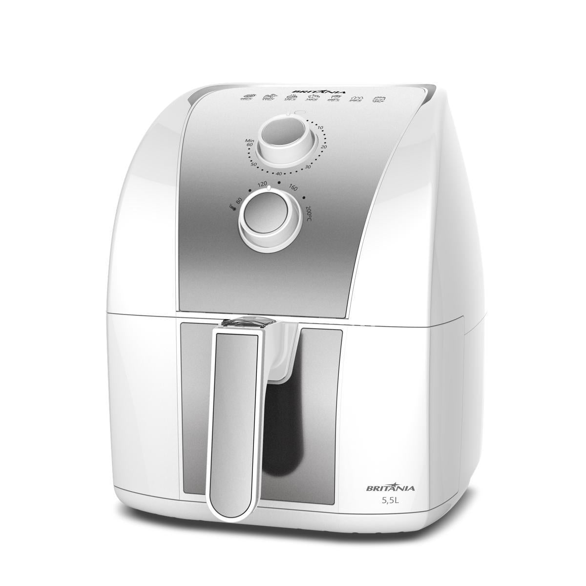 Transforme sua alimentação com a Fritadeira Air Fryer Britânia BAF52 Redstone de 5,5 litros! Prepare pratos crocantes e saborosos com até 80% menos gordura, sem abrir mão do sabor que você e sua família adoram. Ideal para quem busca uma alternativa mais saudável e prática para frituras, esta air fryer é perfeita para o dia a dia, desde um lanche rápido até um jantar completo. Sua capacidade de 5,5 litros permite preparar porções generosas, atendendo a todos os membros da família ou a um encontro com amigos. O cesto quadrado otimiza o espaço interno, garantindo que seus alimentos cozinhem de maneira uniforme, sem a necessidade de virar ou sobrepor. O revestimento Redstone, além de um design moderno e elegante, oferece alta resistência e facilita a limpeza, evitando que os alimentos grudem. Com a tecnologia 360° Air Flow e seus 1500W de potência, o ar quente circula de forma eficiente, garantindo um cozimento rápido e uniforme. Controle a temperatura de 80°C a 200°C para resultados perfeitos em cada receita. A Fritadeira Air Fryer Britânia BAF52 é a escolha inteligente para uma cozinha mais saudável, prática e saborosa.