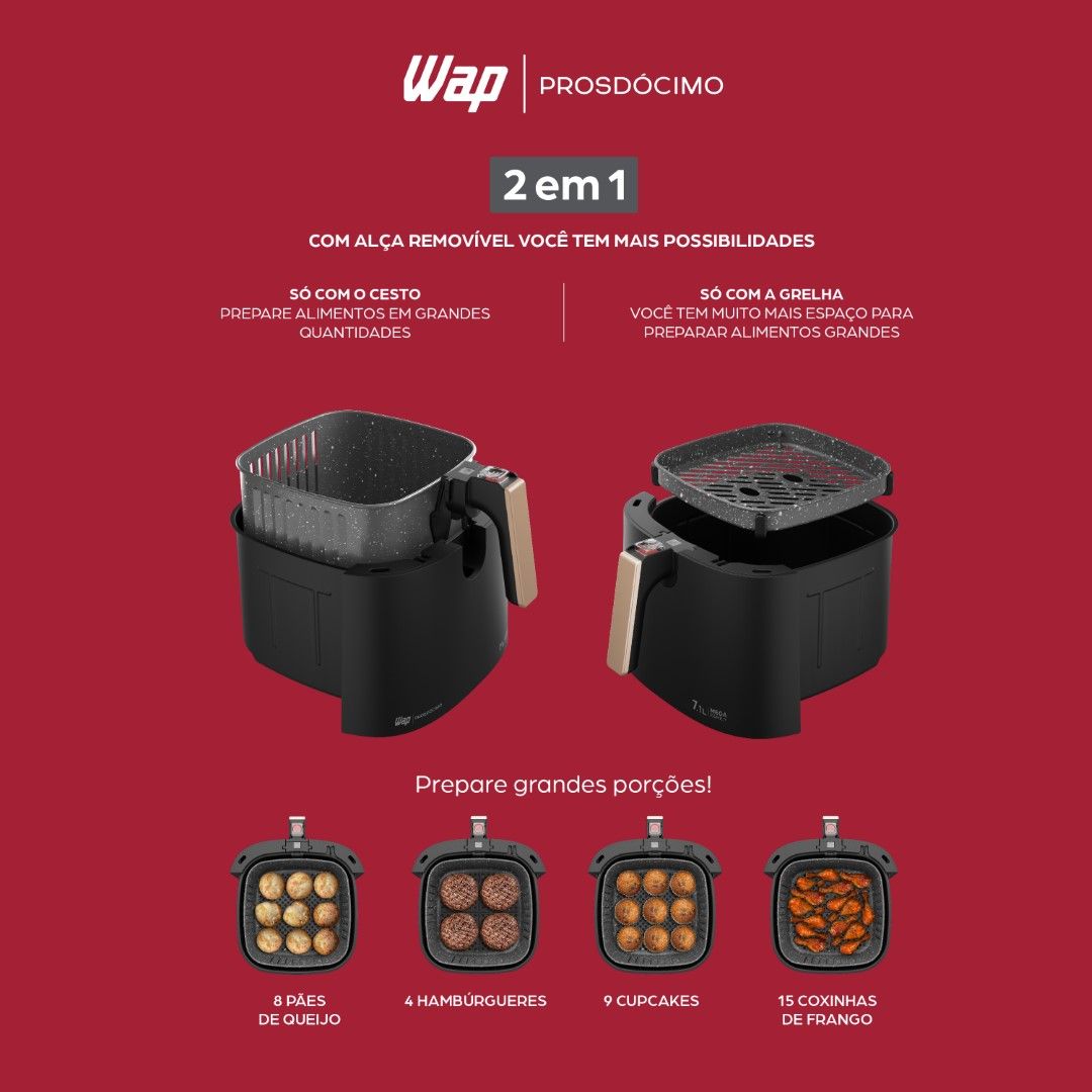 A Fritadeira WAP Mega Family é a companheira definitiva para quem valoriza praticidade, versatilidade e alimentação saudável. Com recursos de alta qualidade e um design moderno, ela certamente se tornará seu aliado na cozinha. Dê asas à sua criatividade culinária e desfrute de refeições deliciosas sem abrir mão da saúde.