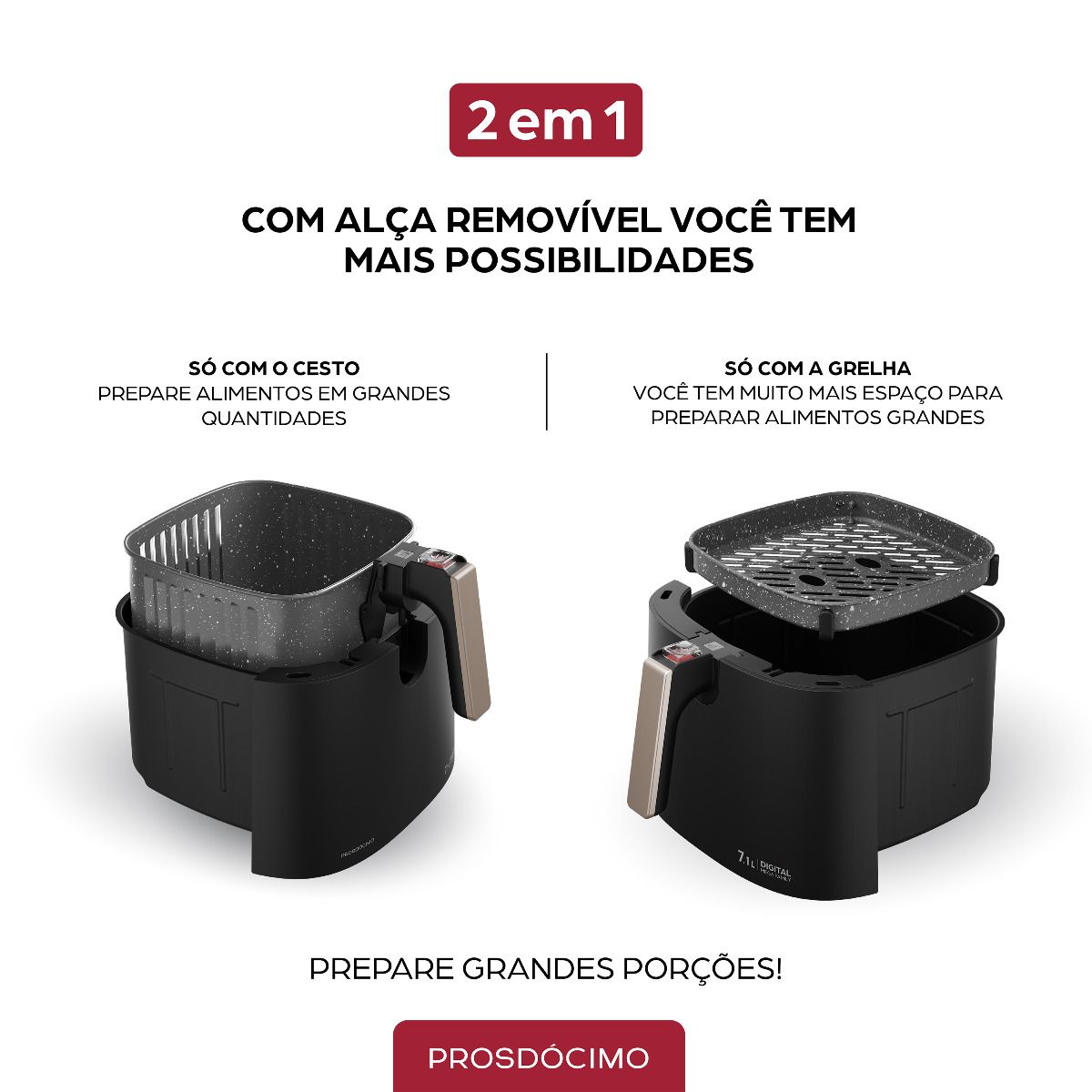 Equipada com um cesto e grelha removíveis, que permite explorar uma variedade de opções culinárias.