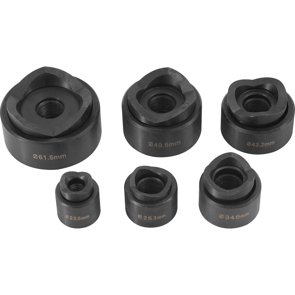 - 6 Matrizes redondas (22,5 mm, 28,3 mm, 34,6 mm, 43,2 mm, 49,6 mm, 61,5 mm)