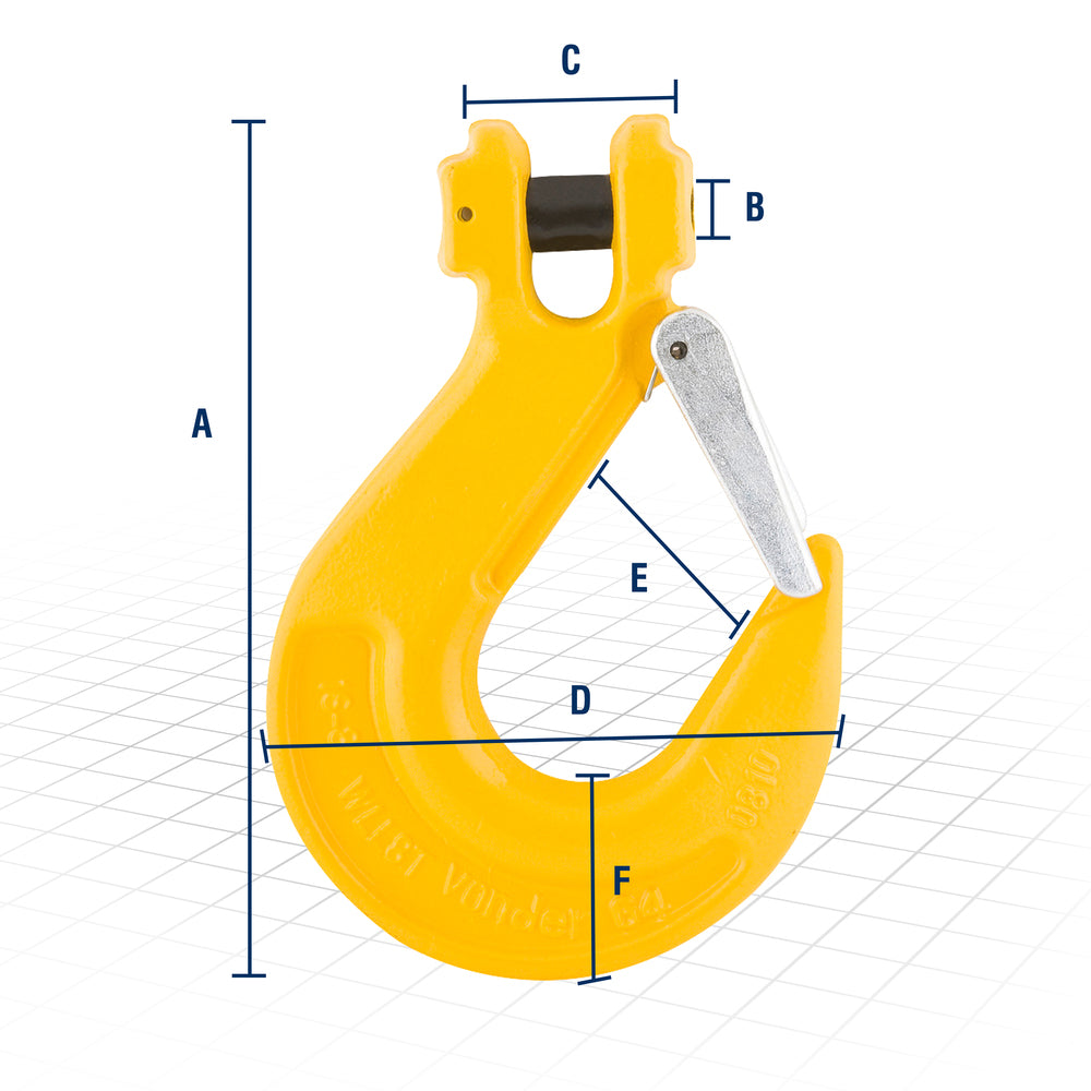 Utilizado, principalmente, em conjuntos e lingas de correntes. A medida do gancho refere-se ao diâmetro da corrente.Características Técnicas:
