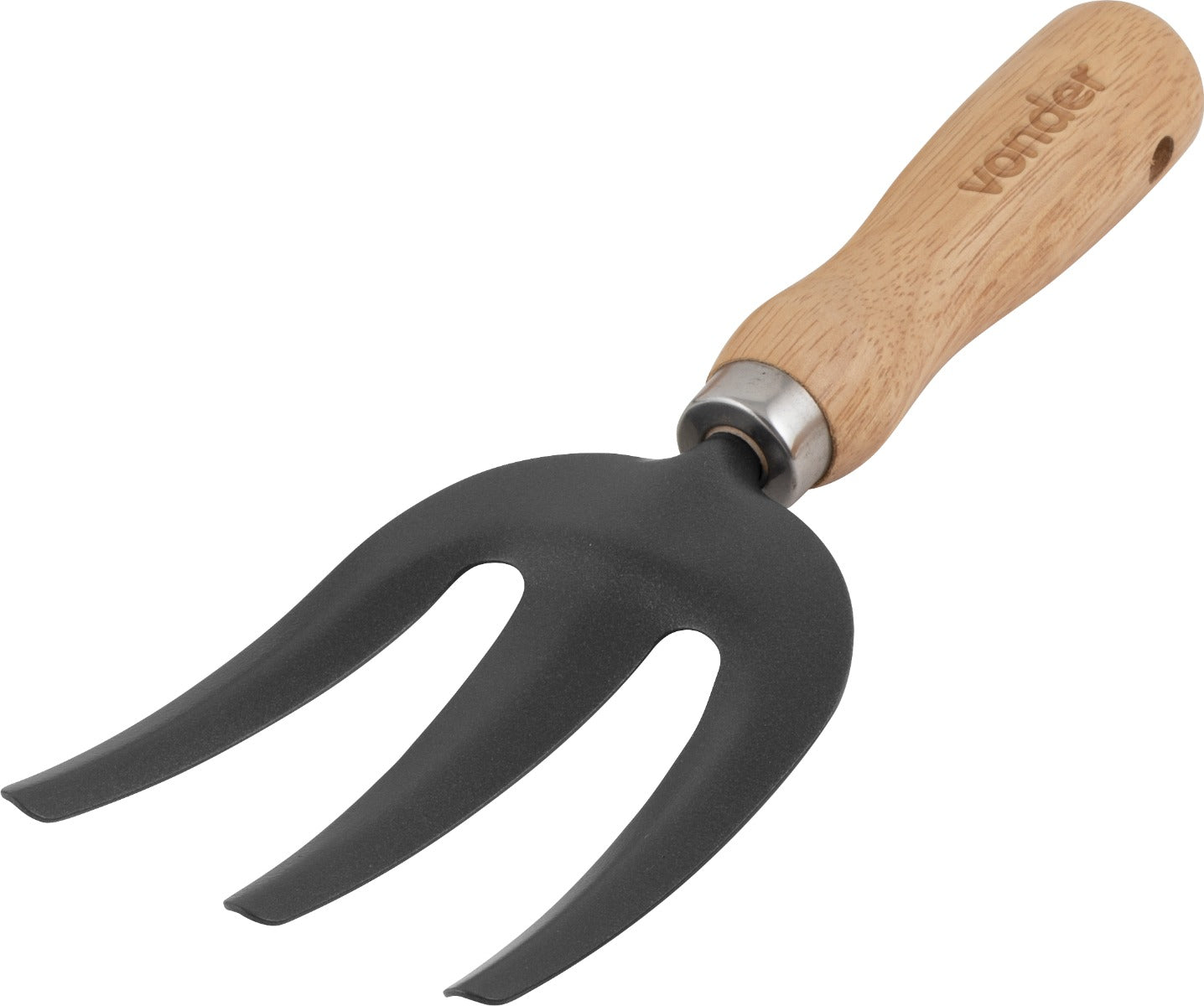 Possui corpo metálico com pintura eletrostática, proporcionando excelente resistência à oxidação/corrosão, e cabo de madeira.
