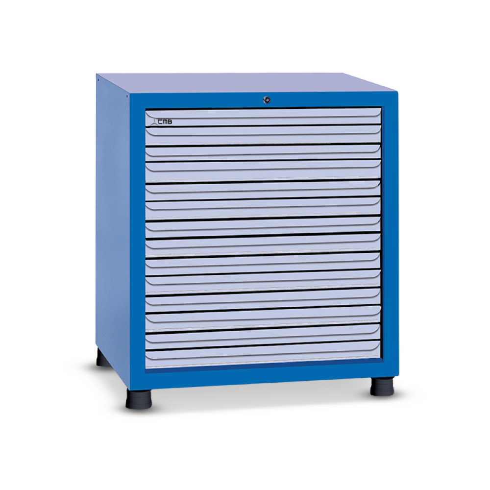 Gaveteiro Para Ferramentas é fabricado em chapas de aço carbono resistentes, recebe tratamento de superfície anticorrosivo e finalmente recebe um acabamento de tinta eletrostática a pó.