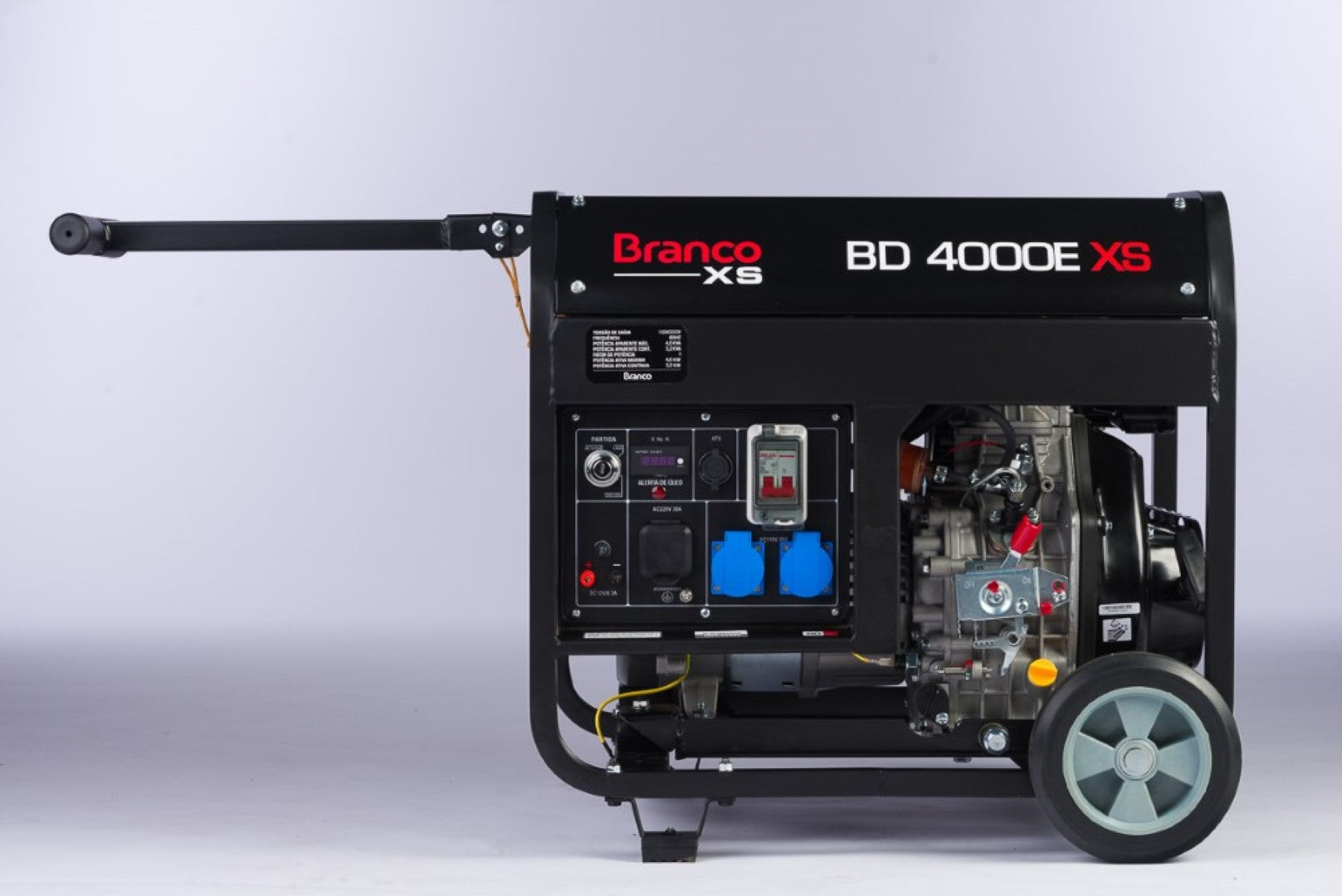 Motor: 6,9cv @ 3600rpm Potência máxima: 4,0 kVA Controle de tensão: AVR Carregador de bateria: 12V / 8,3A Capacidade do tanque: 15 L Autonomia (50% de carga): 20h Ruído (7 m): 86 dBA Dimensões do produto (CxLxA) (mm): 735 x 621 x 630 mm Peso: 85 (L) / 97 (B) kg Engine Fuel Type: Diesel