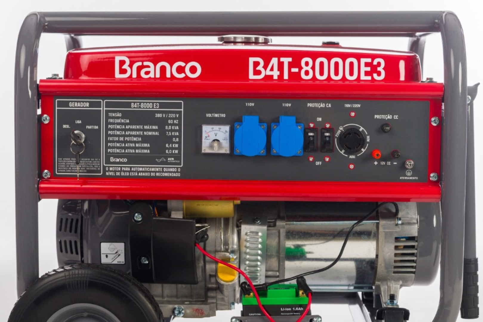 Motor: 15,0 cv Potência máxima: 8,0 kva Potência contínua: 7,5 kva Tensão de saída Principal: 380 V Controle de tensão: AVR Carregador de bateria: 13 V; 8,3 A Capacidade do tanque: 22 L Fases: Trifásico Ruído (7 m): 73 dBA Dimensões do produto (CxLxA) (mm): 691 x 750 x 640 Peso: 83