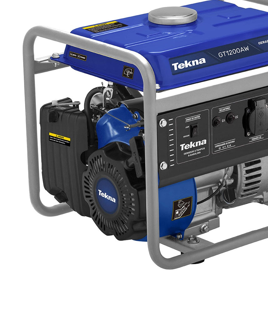 O Gerador a Gasolina Tekna GT1200AW foi desenvolvido para uso frequente, com excelente autonomia e estabilidade na geração de energia. É seguro e ideal para garantir o funcionamento de ferramentas, iluminação ou eletrodomésticos em sua casa ou no acampamento. Possui quadro reforçado, para garantir a firmeza e segurança do Gerador. Equipado com carregador de bateria, voltímetro e alerta de nível de óleo.