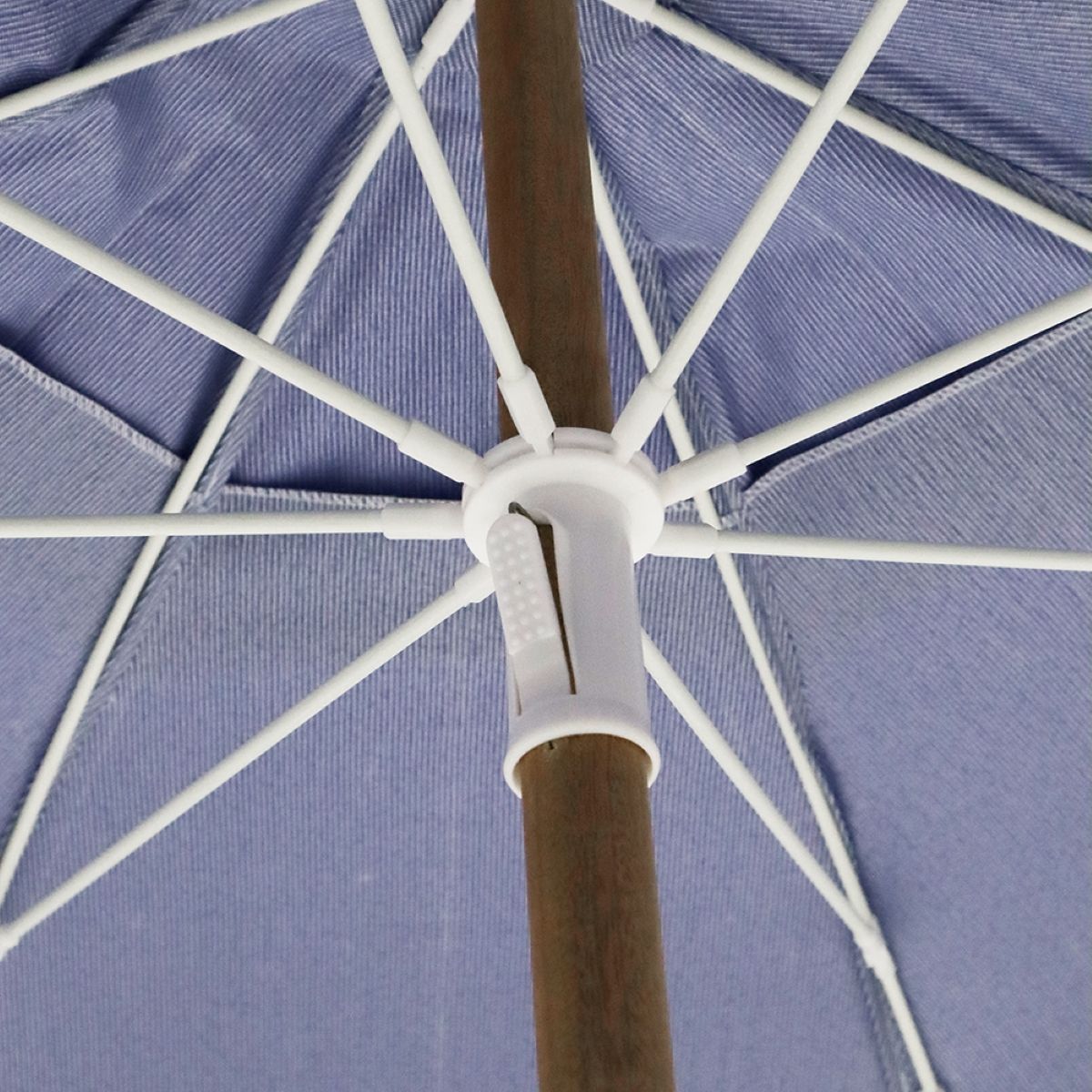 Conteúdo da embalagem: 1 Guarda Sol 2,4 M Azul em Bagum Caiobá e Vareta Fibra Royal