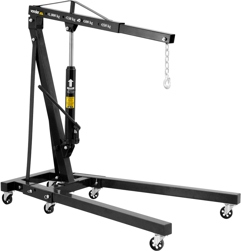 Conteúdo da embalagem 1 Guincho hidráulico dobrável. Acompanha: 6 rodízios giratórios, sendo: 4 peças de 90 mm (2 dianteiras/2 traseiras) e 2 peças de 80 mm (intermediárias). Aplicações e dicas de uso Indicado para movimentação e elevação de cargas Destaques e diferenciais Guincho dobrável, facilitando o armazenamento e o transporte. Possui acabamento pintado que proporciona maior resistência à corrosão/oxidação.