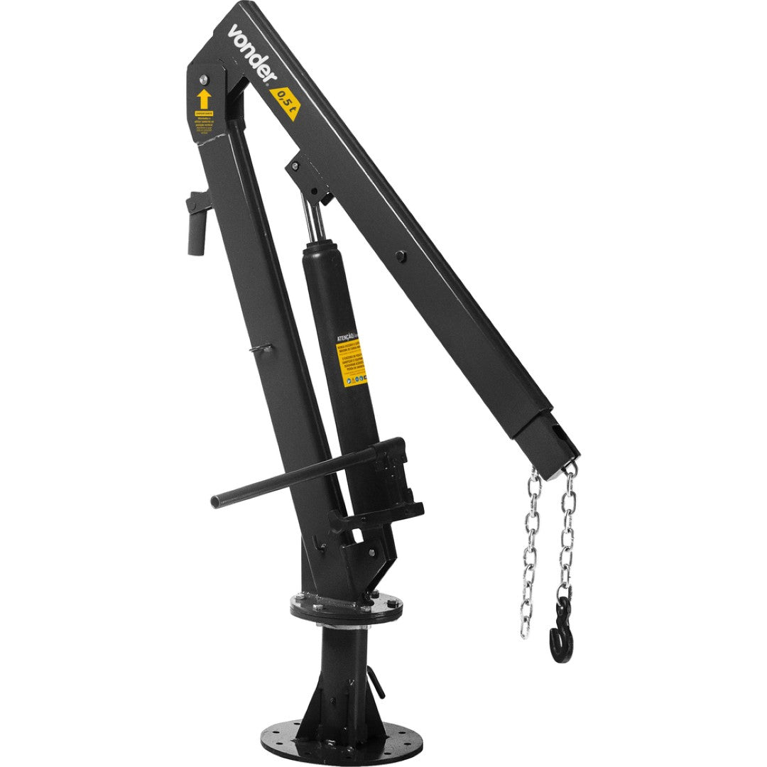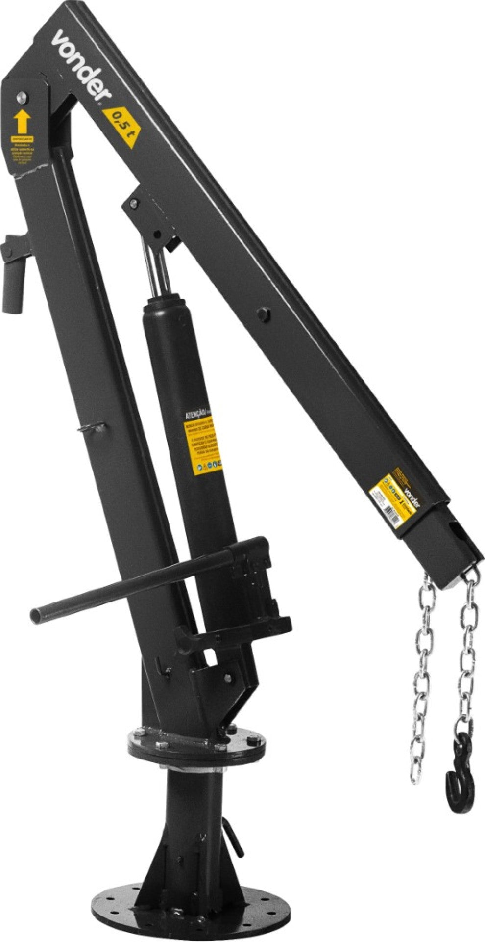 Possui acionamento hidráulico manual, podendo suspender cargas de até 0,5 tonelada. Guincho giratório 360°.