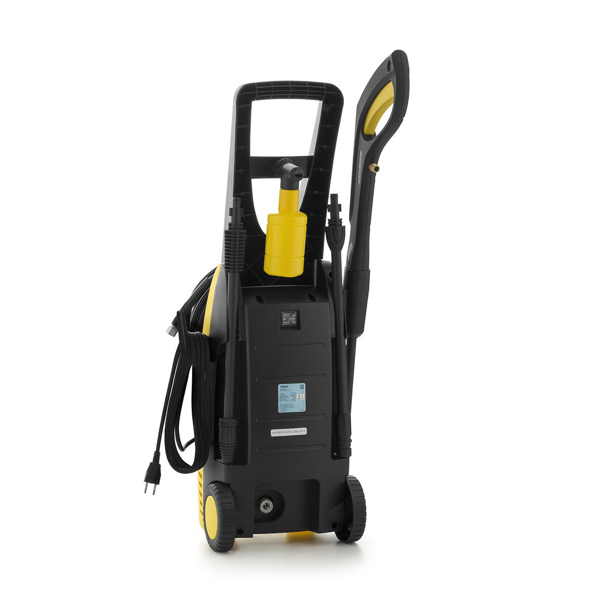 A Lavadora de Alta Pressão tem potência de 1800 W que resulta em uma pressão máxima de 14 MPa e vazão nominal de 6,6 L/min. Possui rodas que facilitam o transporte e encaixe para todos os acessórios. Com sistema auto-stop que para o equipamento quando solta o gatilho, garante uma operação segura. Desenvolvida para uso frequente, é indicada para lavar calçadas, pisos, automóveis e remover até as sujeiras mais difíceis de áreas externas. Conta com recipiente para detergente e um completo kit de acessórios que inclui pistola, mangueira, lança regulável, recipiente para detergente e conector de mangueira.