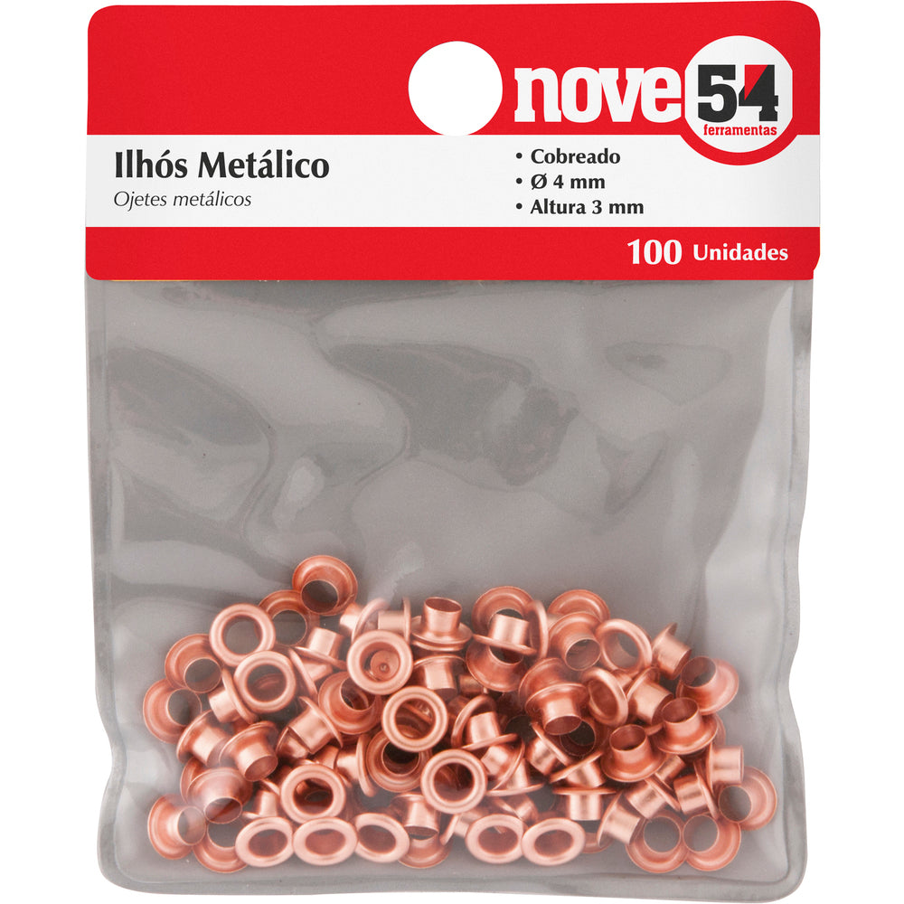 Acabamento do ilhós: Cobreado Diâmetro: 4 mm Altura: 3 mm
