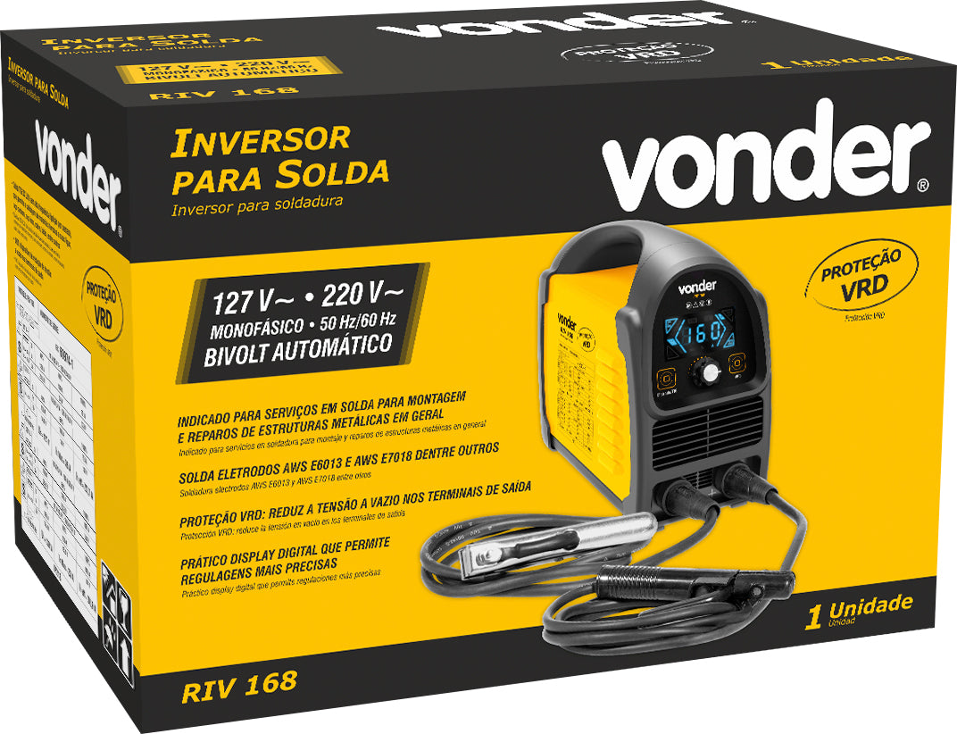 Indicado para serviços de soldagem para montagem e reparos de estruturas metálicas em geral. Permite a soldagem de eletrodos AWS E6013 e AWS E7018 dentre outros. Realiza também solda TIG LIFT (abertura do arco por contato) que permite a soldagem de materiais ferrosos e suas ligas, aço carbono, aço inox, cobre, latão e outros. Não é possível o uso para soldagem de alumínio e suas ligas no processo TIG DC. Não acompanha tocha TIG. Indicada tocha TIG TTV 209 VONDER (68.48.209.000).