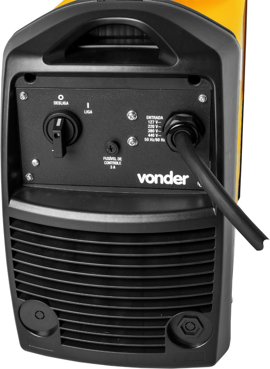 Indicado para serviços de solda em montagens e reparos de estruturas metálicas em geral, ideal para serviços de campo e aplicações severas. Inversor de solda com alimentação automática 110 V~ a 575 V~, ideal para uso em locais com variação de tensão de rede, rede rural e uso com geradores de energia. Solda eletrodos AWS E6013, AWS E7018, entre outros. Realiza também solda TIG DC LIFT (sem alta frequência/ignição por contato) que permite a soldagem de materiais ferrosos e suas ligas, aço carbono, aço inox, cobre, latão e outros. Seu uso não é recomendado para soldagem de alumínio e suas ligas no processo TIG DC. Não acompanha tocha TIG. Utilizar tocha TIG TTV 213 (68.48.213.000) ou tocha TIG com válvula e conector de engate rápido 13 mm compatível com a capacidade do equipamento.