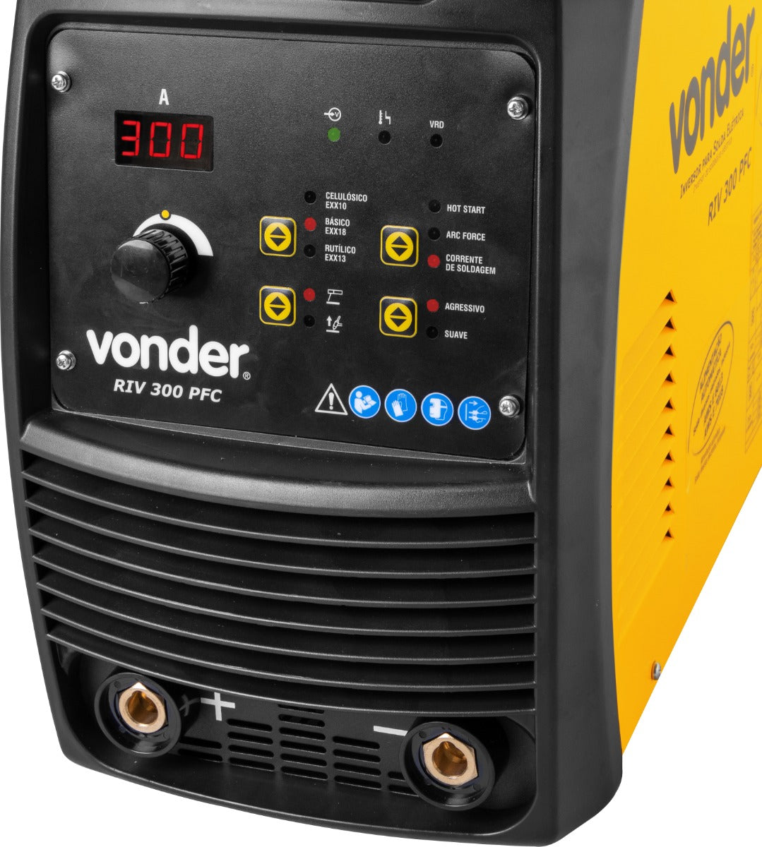 Possui display digital para visualização dos parâmetros, sistema de proteção contra sobreaquecimento, ajuste de Arc Force (evita que o eletrodo grude na peça durante a soldagem), Hot Start (auxilia na abertura do arco) e Anti Sticking (protege o equipamento e o eletrodo contra picos de corrente caso o eletrodo fique grudado). Programações específicas conforme o tipo de eletrodo: básico, rutílico e celulósico. Conta ainda com a tecnologia PFC (Power Factor Correction - correção de fator de potência), que proporciona as seguintes vantagens: redução em até 30% do consumo de energia, comparado com equipamento sem tecnologia PFC, operação em redes elétricas com variação de tensão, além de produzir menos ruídos e distorções na rede elétrica. Permite ainda trabalhar em uma ampla faixa de tensão (110 V~ a 575 V~) em redes monofásicas ou trifásicas, detectando automaticamente a tensão de entrada. Conta também com função VRD, dispositivo de redução de tensão a vazio nos terminais de saída, garantindo maior segurança para o operador contra choque elétrico.