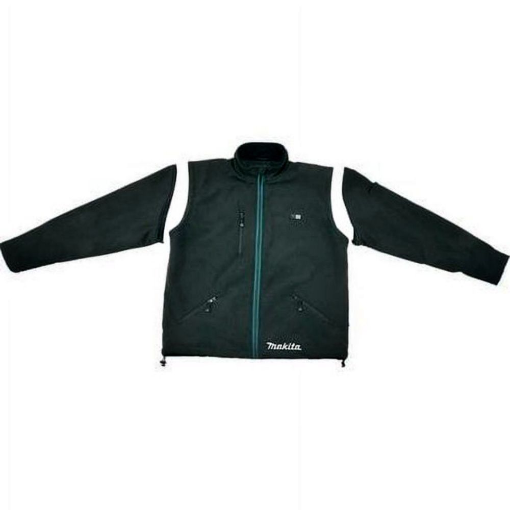 A jaqueta aquecida sem fio Makita inclui um bolso separado nas costas para o bloco de energia. O controlador ON/OFF de fácil acesso está equipado com indicadores LED úteis. Carregue seus dispositivos eletrônicos pessoais usando a porta USB embutida. A jaqueta aquecida sem fio da Makita proporciona calor em locais de trabalho frios e ventosos Três configurações de calor permitem escolher o nível de conforto Três zonas de aquecimento envolvem você em calor Gola de lã oferece conforto e estilo Punhos canelados e cintura com cordão oferecem proteção contra o vento O tecido de poliéster e spandex se move com você Informações: