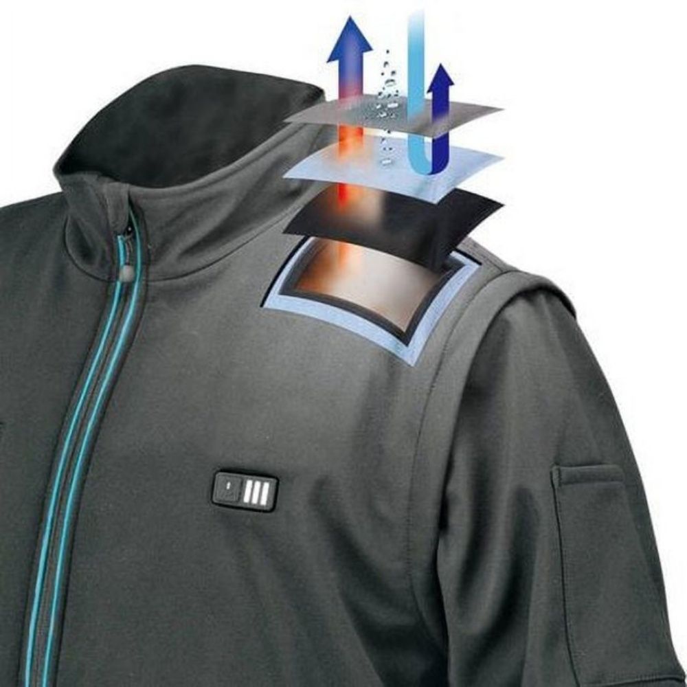 A Jaqueta Aquecida Sem Fio Makita 12V Max CXT íon de lítio (Apenas Jaqueta, Preta, XL) oferece calor e proteção contra os elementos. Três configurações de calor garantem que você possa trabalhar em locais externos mesmo quando a temperatura cai.