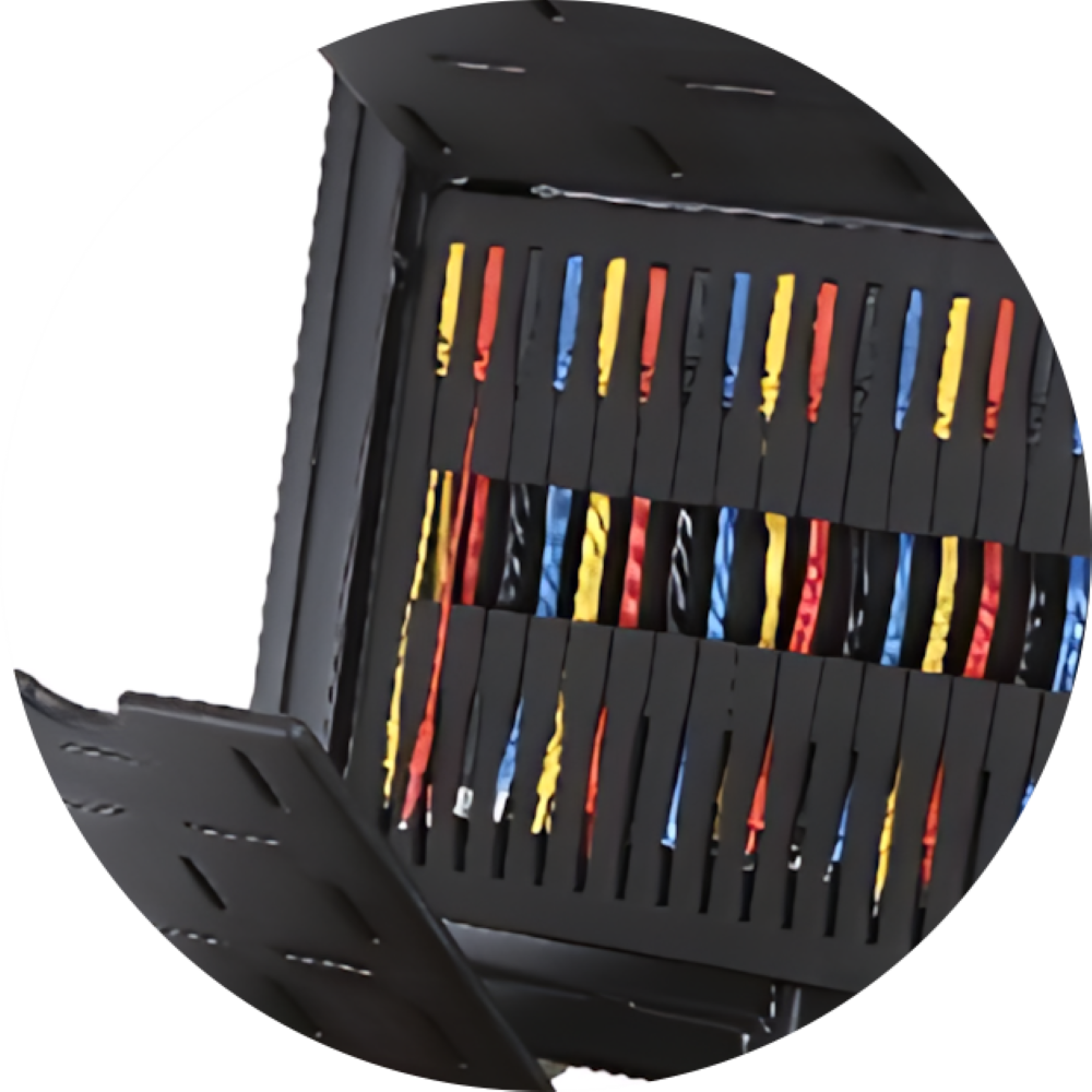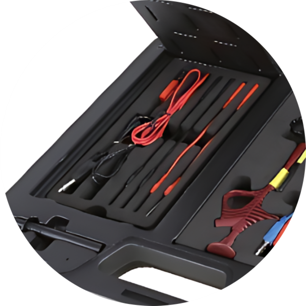 Inclui conectores T, potenciômetros, conectores de banana duplos e simples, conectores SRS, jacaré, sondas de agulha, entre outros.