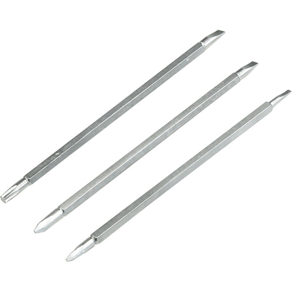 1 Jogo de bits/ponteiras longo, composto por 10 peças, sendo: 1 cabo adaptador 1/4", 1 cabo adaptador 5/32", 4 bits duplo encaixe 1/4"(PZ1 x SQ1, PZ2 x SQ2, PH2 x fenda 1/4", PH1 x fenda 3/16") e 4 bits duplo encaixe 5/32" (T8 x T20, PH0 x fenda 5/64", PH1 x fenda 1/8", T15 x fenda 5/32")
