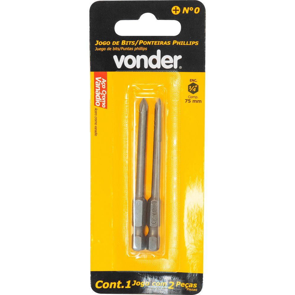 Comprimento total do bits Phillips: 75 mmNúmero da ponta do bits Phillips: Nº0 - 1/8"