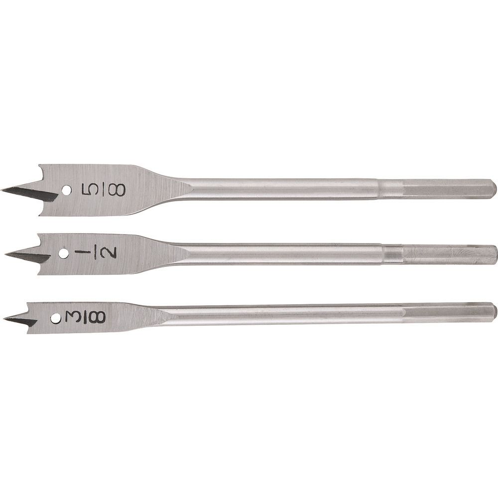 Números de peças do jogo de brocas: 3 peças Comprimento total da broca chata: 6" - 150 mm Material da broca: Aço carbono