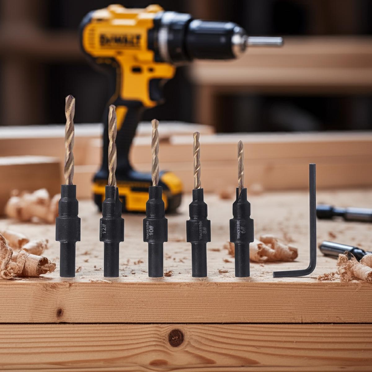 Fabricadas em aço rápido com revestimento de titânio, as brocas oferecem maior resistência ao desgaste, suportando uso contínuo sem perda de corte. O escareador integrado permite não apenas perfurar, mas também preparar o alojamento da cabeça do parafuso, evitando que a madeira lasque ou rache. Isso resulta em montagens mais limpas, profissionais e com acabamento superior.