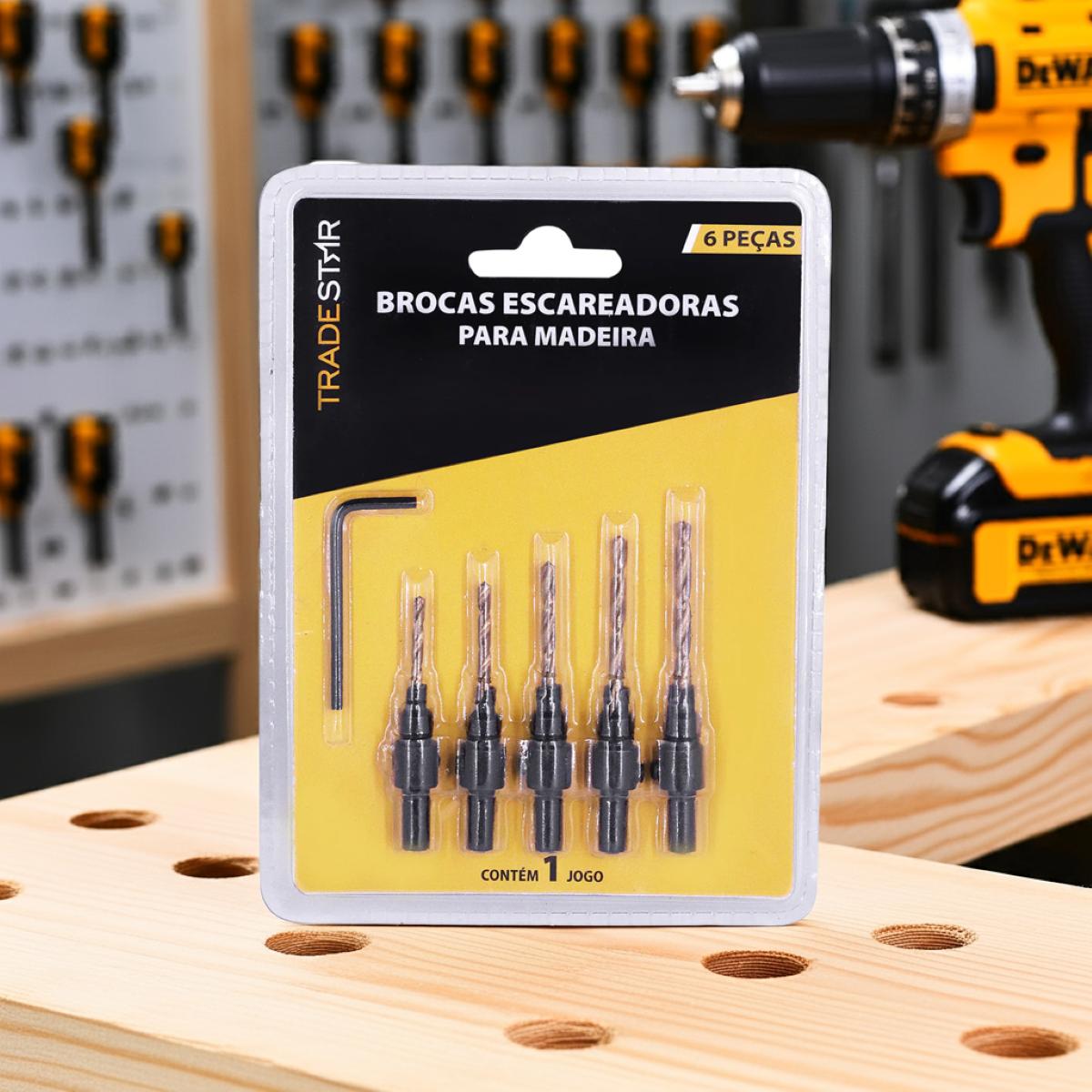 Jogo Broca Tradestar com Escareador 6 até 14 mm para Madeira 6 Peças