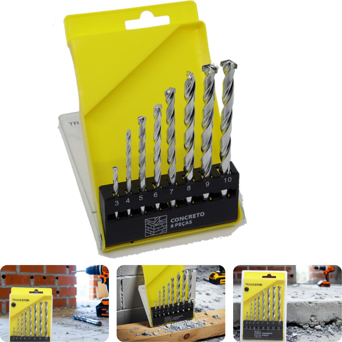 Jogo Broca Concreto Tradestar 3 mm até 10 mm Vídea 8 Peças