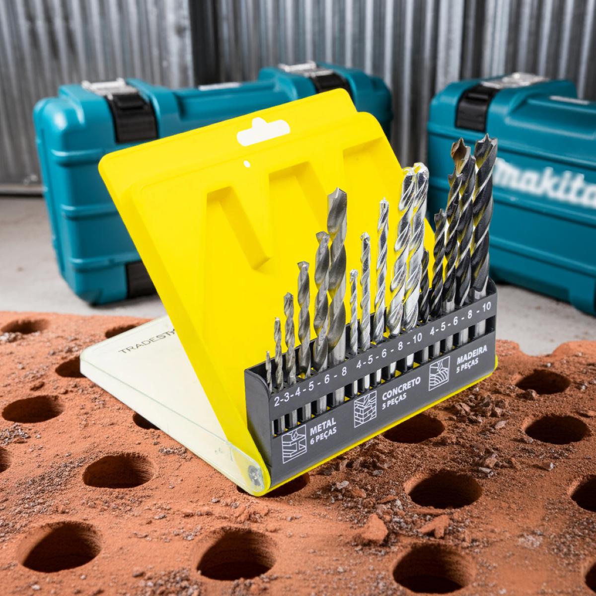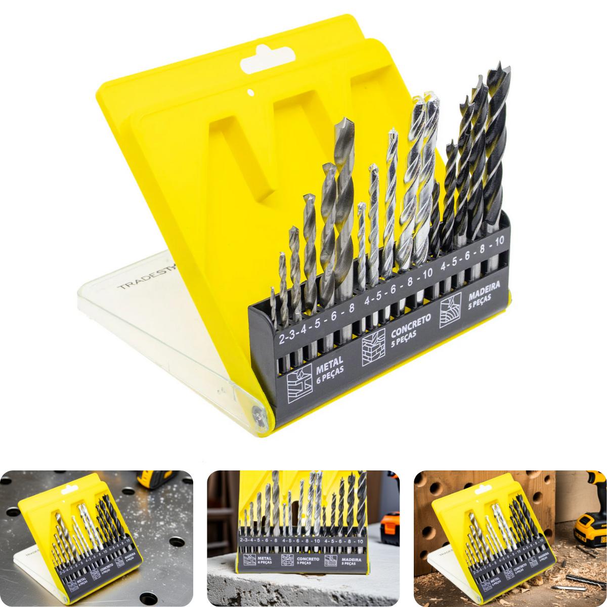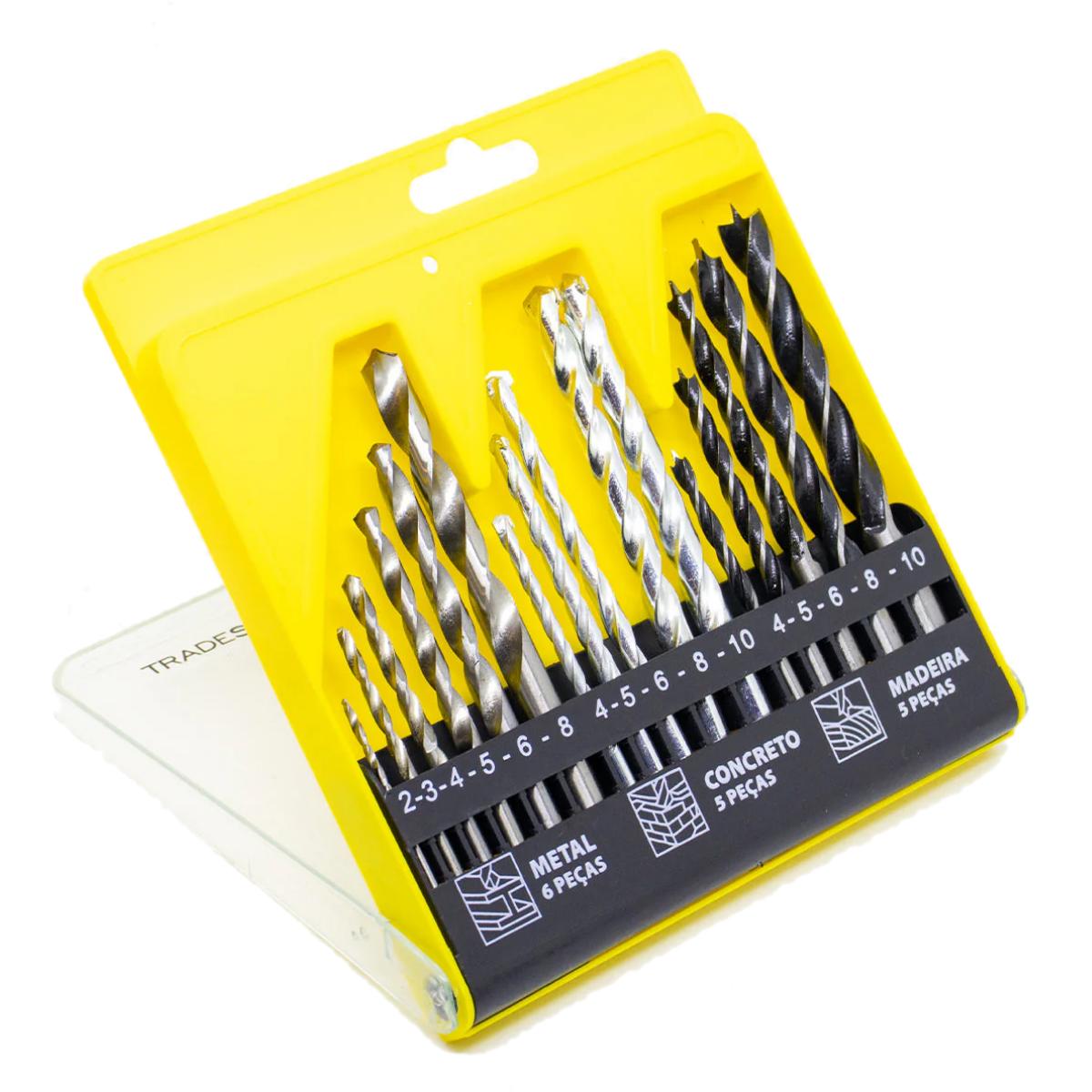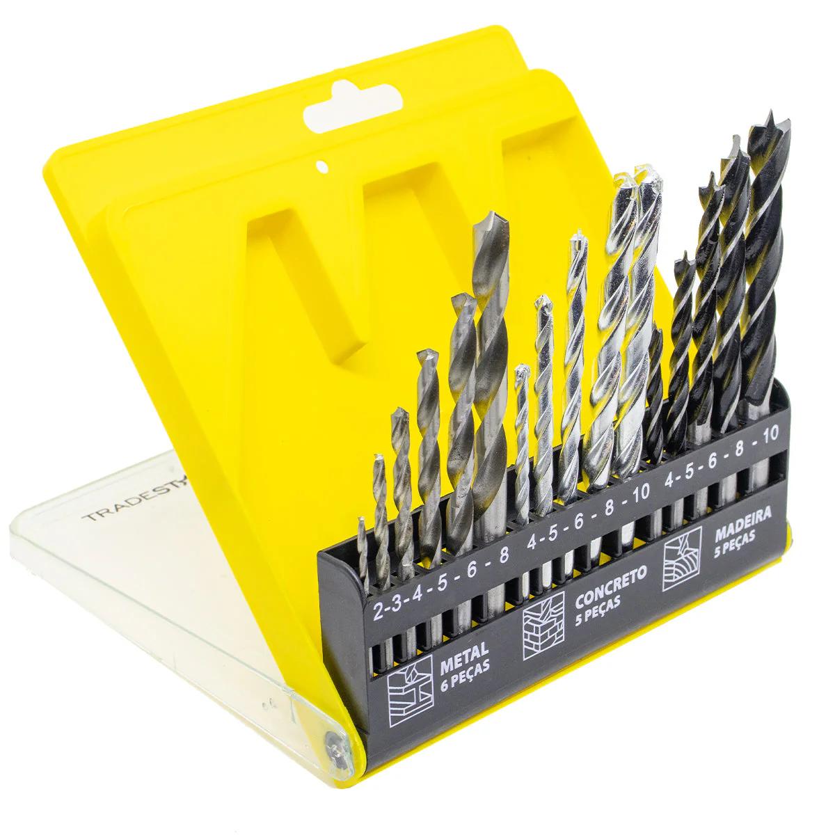 Jogo de Brocass Tradestar Concreto Madeira Metal 16 Peças