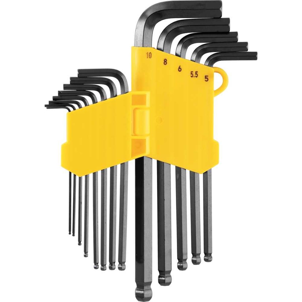 Medidas (mm/pol): 1,27 mm, 1,5 mm, 2 mm, 2,5 mm, 3 mm, 3,5 mm, 4 mm, 4,5 mm, 5 mm, 5,5 mm, 6 mm, 8 mm e 10 mm