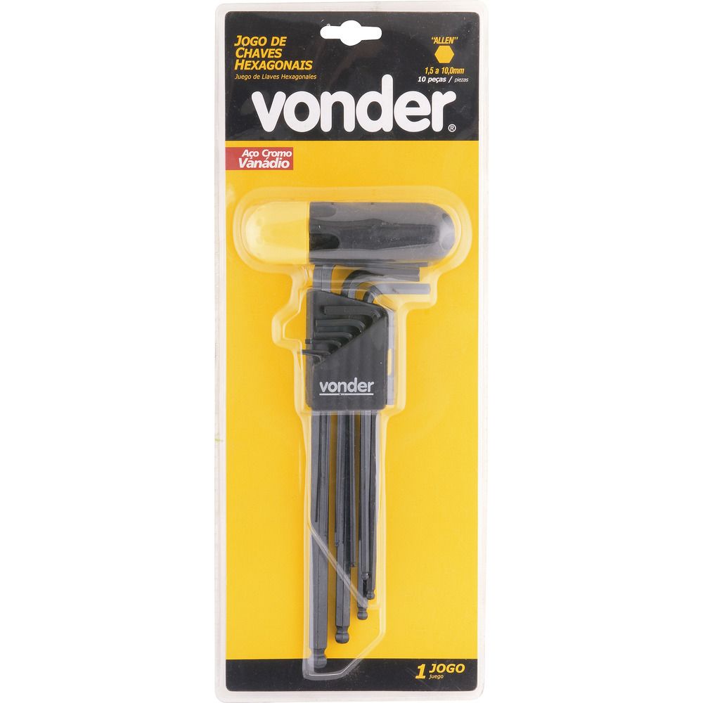 Descubra a eficiência e a praticidade do Jogo de Chaves Hexagonais Allen Tipo L Abaulada Longa, ideal para quem busca precisão e durabilidade em suas ferramentas. Fabricado pela renomada marca Vonder, este conjunto é composto por 10 peças de diferentes tamanhos, variando de 1,5 mm a 10 mm, todas feitas em aço cromo vanádio, garantindo resistência e longa vida útil. O acabamento fosfatizado preto proporciona uma proteção extra contra corrosão, enquanto o design ergonômico e o cabo antiderrapante asseguram um manuseio confortável e seguro. Este jogo de chaves é perfeito para apertar e soltar parafusos com sextavado interno, sendo uma ferramenta essencial para profissionais e entusiastas do "faça você mesmo". O cabo plástico adaptador incluso permite uma melhor transmissão de torque, facilitando o trabalho em locais de difícil acesso. Além disso, o formato em L e a ponta abaulada oferecem maior versatilidade e alcance.