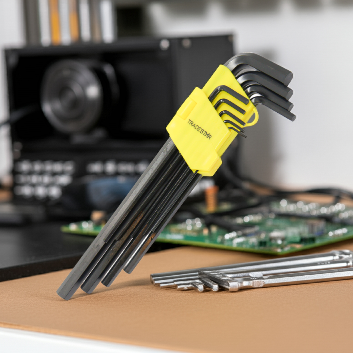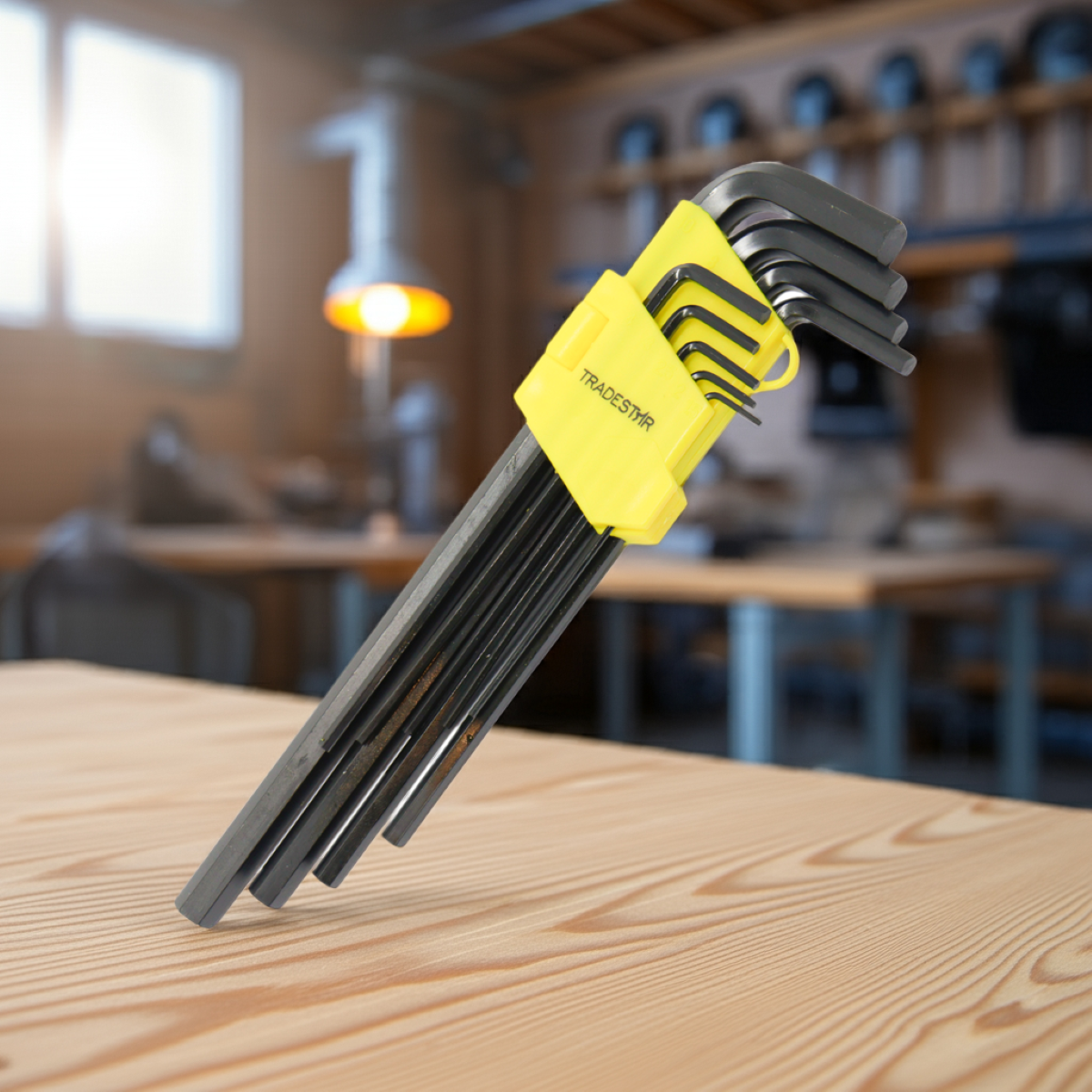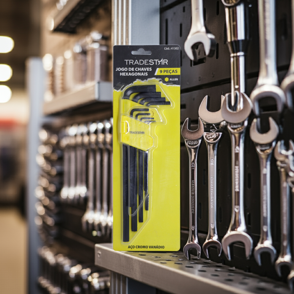 O Kit de Chaves Allen Tradestar Longo 9 Peças é a ferramenta indispensável para quem busca precisão, durabilidade e praticidade em aplicações profissionais ou domésticas. Produzidas em aço Cromo Vanádio de alta resistência, essas chaves garantem longa vida útil, resistência à corrosão e excelente desempenho no aperto ou desaperto de parafusos com sextavado interno.