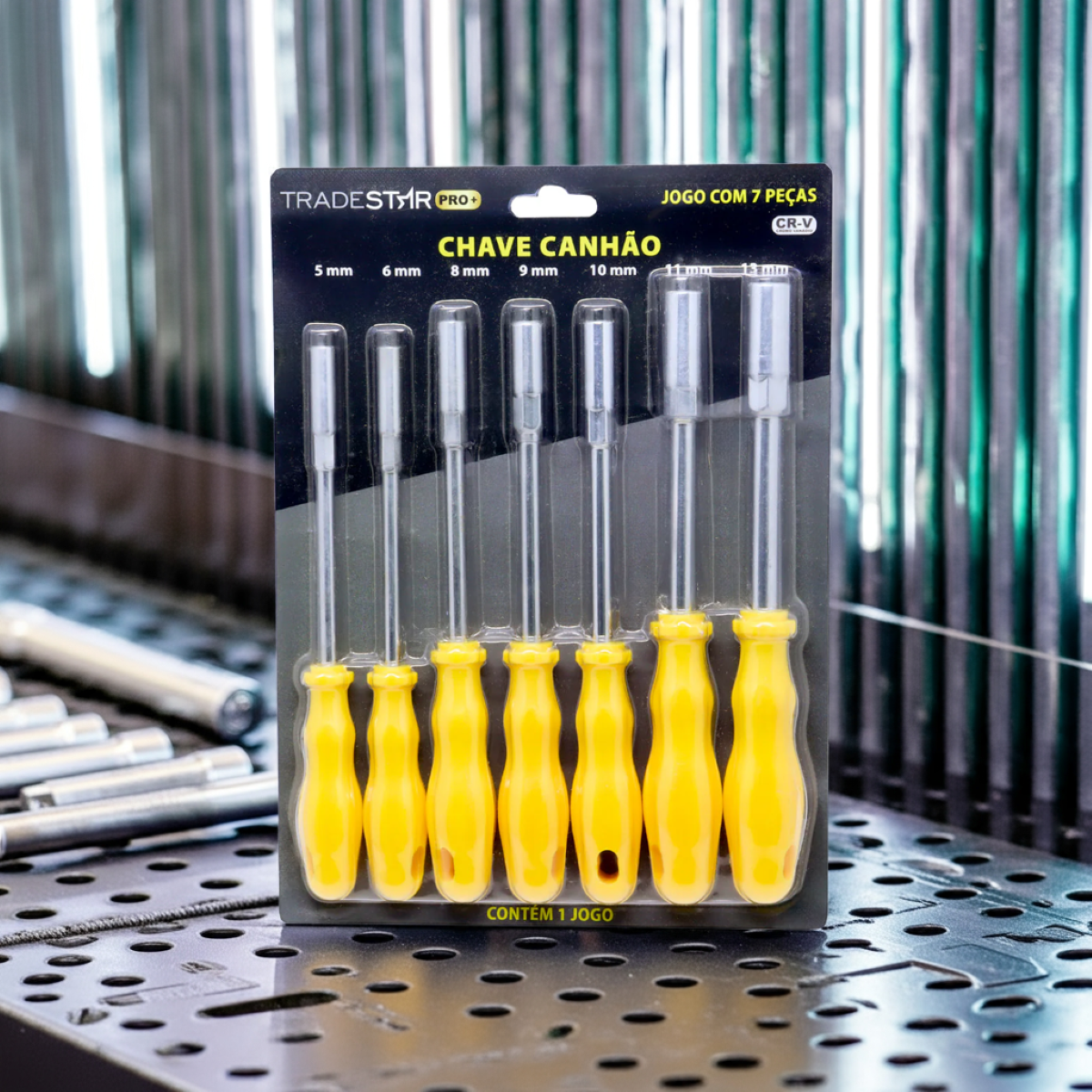 Kit Chaves Canhão Tradestar Sextavada 7 peças 5 mm até 13 mm Cromo Vanádio