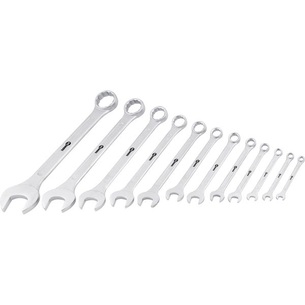 Conteúdo da embalagem 1 Jogo de chaves combinadas, composto por um estojo plástico com 12 peças, sendo: 6 mm, 7 mm, 8 mm, 10 mm, 11 mm, 13 mm, 14 mm, 17 mm, 19 mm, 22 mm, 27 mm e 32 mm Aplicações e dicas de uso Indicado para apertar e soltar porcas e parafusos sextavados. Nunca utilizar prolongadores sobre as chaves, pois isso aumentará o torque aplicado e diminuirá a vida útil das ferramentas. Uso leve. Destaques e diferenciais Possui acabamento cromado fosco, proporcionando maior resistência contra oxidação/corrosão. Combina na mesma chave um lado fixa e outro estrela, possibilitando aplicações em locais de difícil acesso.